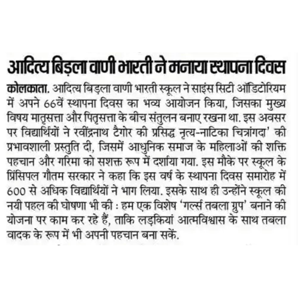 Aditya Birla Vani Bharati, formerly Rishra Vani Bharati, is a leading CBSE school in Hooghly, West Bengal, located just 20 km from Kolkata.