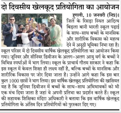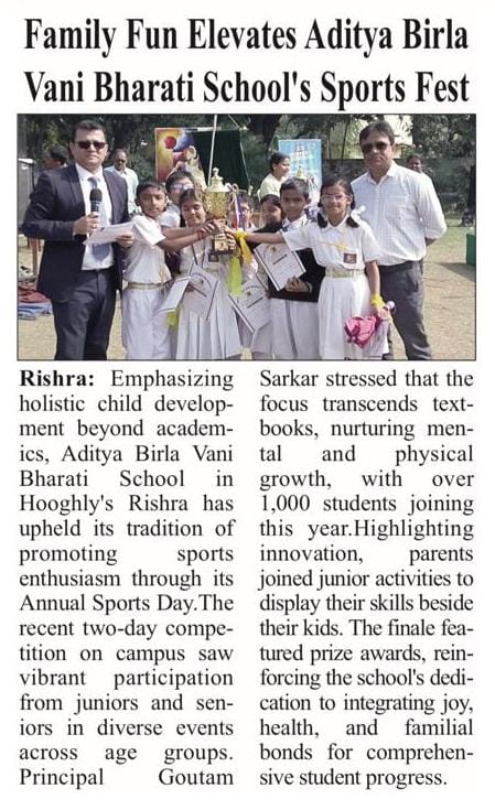 The vibrant sports festival, recently covered by leading newspapers such as Headlines now (11.01.2026), Abhay Banga Patrika (11.01.2026) and Vishwamitra (11.01.2026) witnessed enthusiastic participation from over 1,000 students, along with active involvement from parents and teachers.